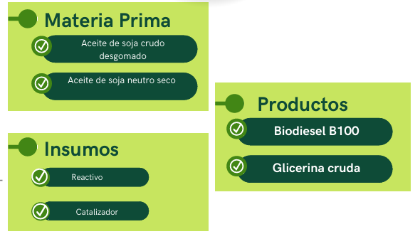cargo del Cliente: tanques de aceite, biodiesel, reactivo, catalizador , glicerina;